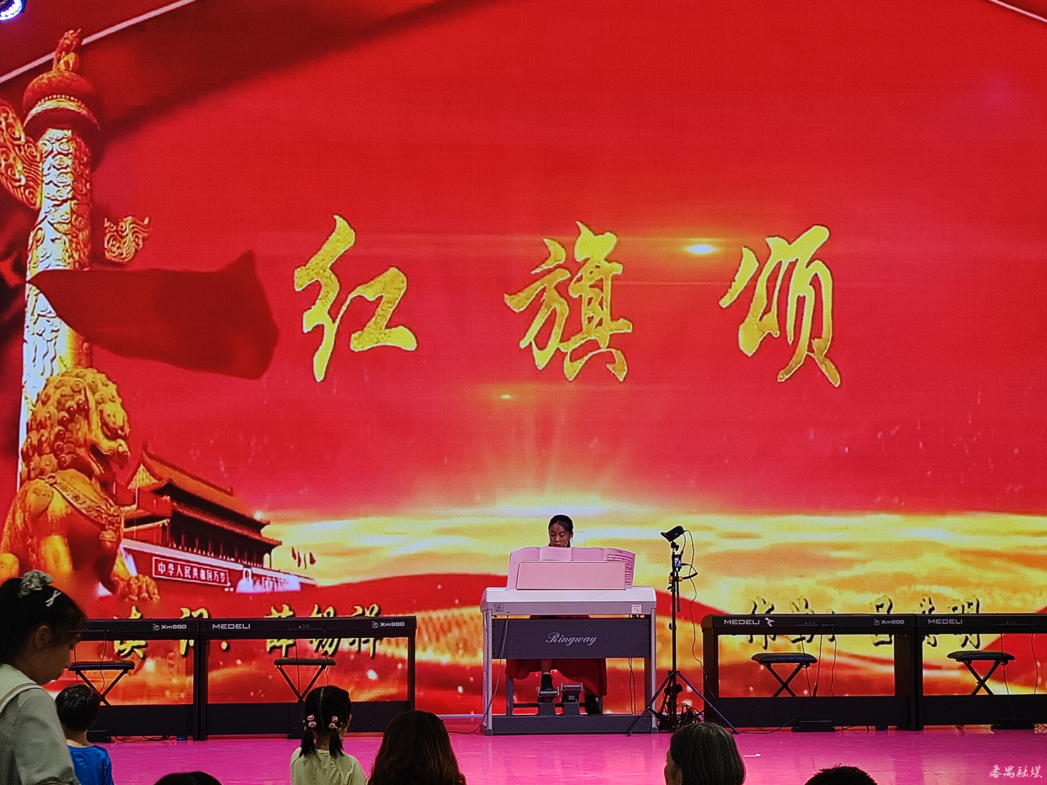 当晚演出的曲目均选自冼星海代表作或红色经典,涵盖独唱、合唱、器乐演奏等多种形式。音乐会以钢琴独奏《保卫黄河》开场,激昂的旋律如波涛汹涌,瞬间抓住了所有人的感官,仿若置身于那热血沸腾的抗战年代。紧接着,电子琴弹唱《卖报歌》带来别样风情,清脆的歌声配合着灵动的电子琴音,似在诉说着旧时光里孩子们的纯真与坚韧,将现场氛围推向高潮。诗朗诵《冼星海》更是把人们拉入了对这位音乐巨匠的缅怀世界,朗诵者饱含深情的声音,勾勒出冼星海为时代呐喊、为民族发声的高大形象,让台下的听众动容。电子管风琴演奏的《红旗颂》又为这爱国情怀添上浓墨重彩的一笔。当全场合唱《保卫黄河》时,将气氛推向又一高潮,悠扬的旋律、激昂的歌声,不仅是对人民音乐家冼星海诞辰120周年的深情纪念,更搭建起爱国主义音乐教育的生动课堂。