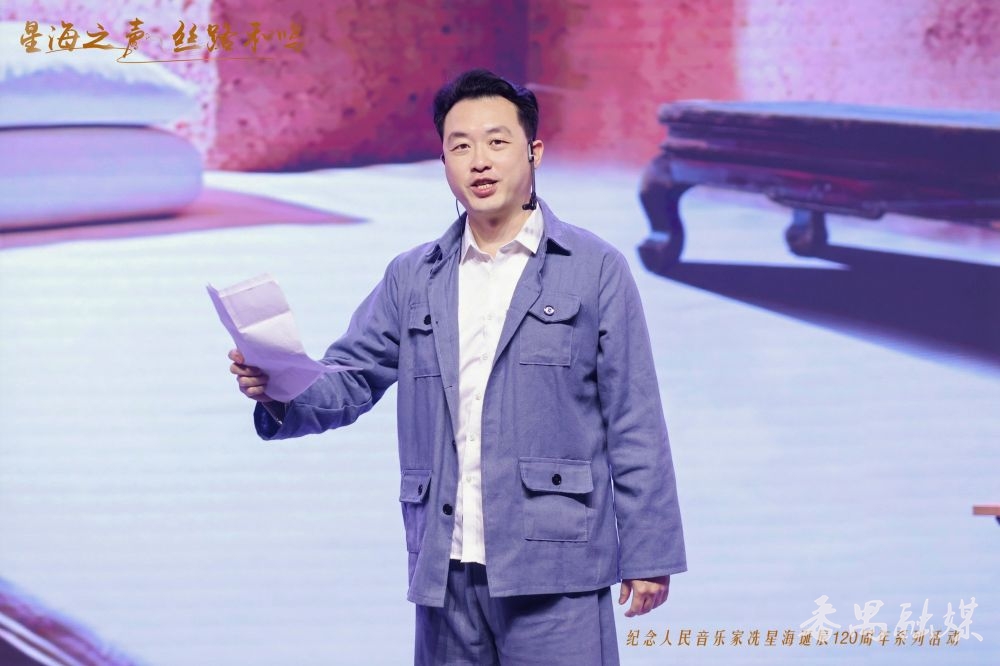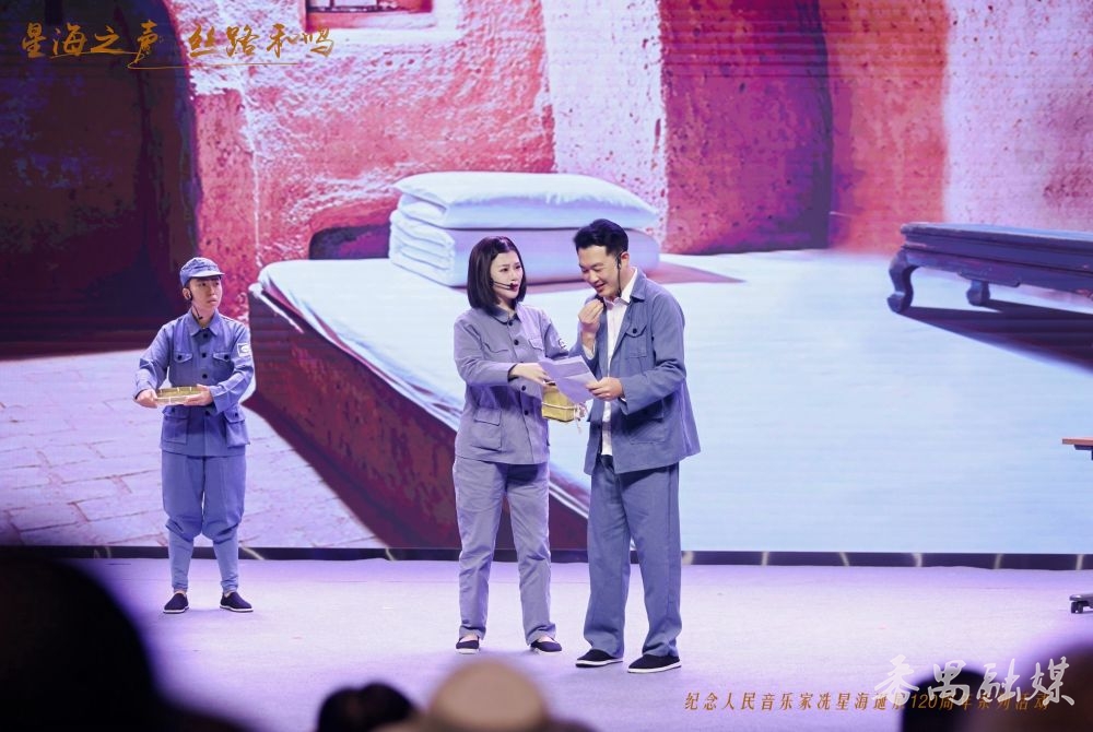 在“星海之声 丝路和鸣”纪念人民音乐家冼星海诞辰120周年系列活动启动仪式现场,《星海·黄河》主创团队还将广播剧的精华片段搬到了舞台上,现场演绎冼星海在延安窑洞中创作《黄河大合唱》的故事。当故事演绎到冼星海爱人以“炒黄豆+红糖”制作提神“土咖啡”时,引得现场观众捧腹大笑。“风在吼,马在叫,黄河在咆哮,黄河在咆哮!”伴随着激昂的音乐声,本次片段演绎迎来结束,现场爆发雷鸣般的掌声。