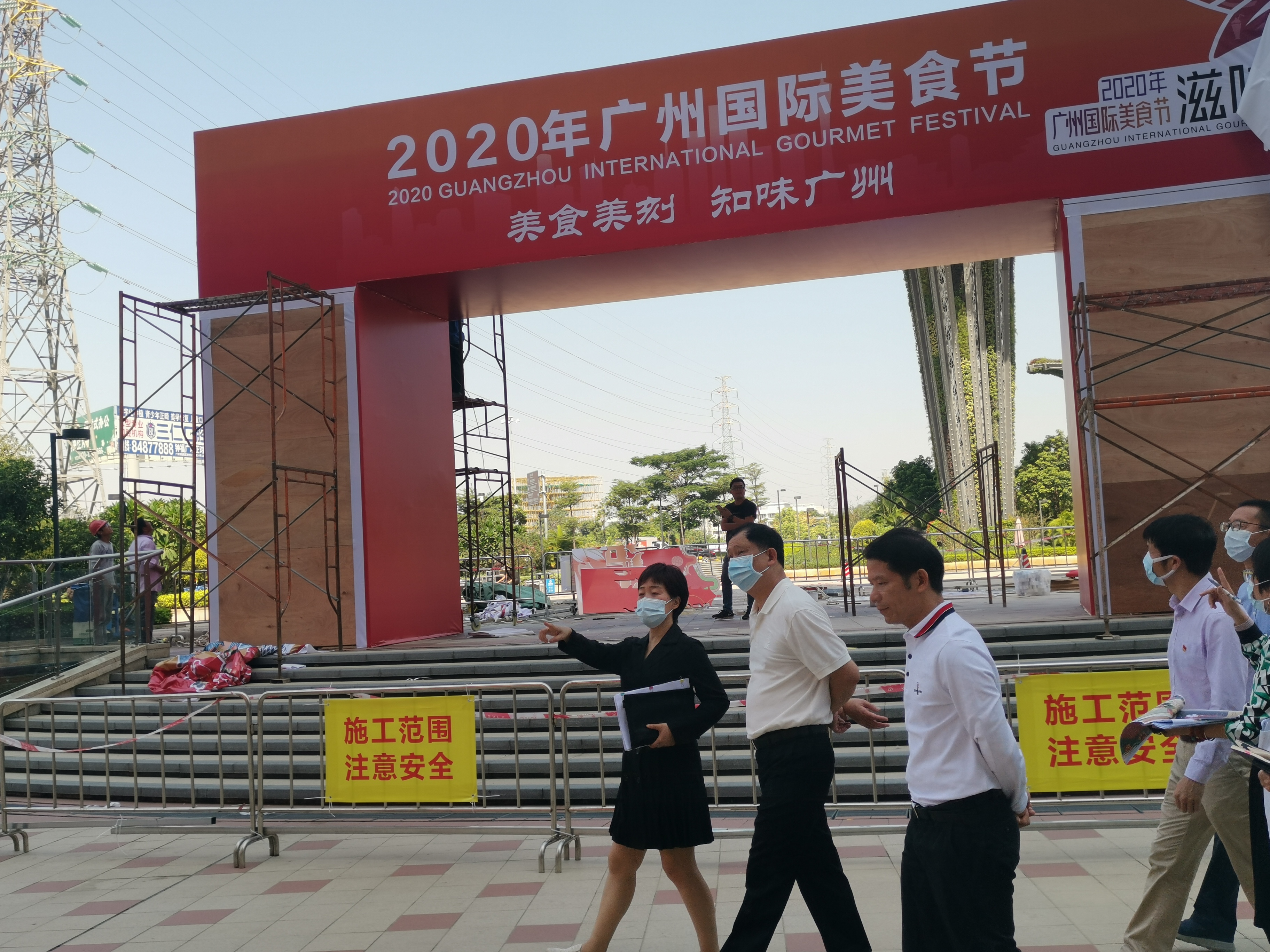 2020广州国际美食节主体活动将于10月30日在番禺区祈福缤纷世界举行,主会场各项筹备工作正在有序开展。10月26日上午,番禺区委书记何汝诚,区委常委、常务副区长吴惠垣,区委常委、区委办主任谭斌等领导,到位于祈福缤纷世界的美食节主会场检查筹备工作开展情况,各相关部门和镇(街)主要负责人陪同。