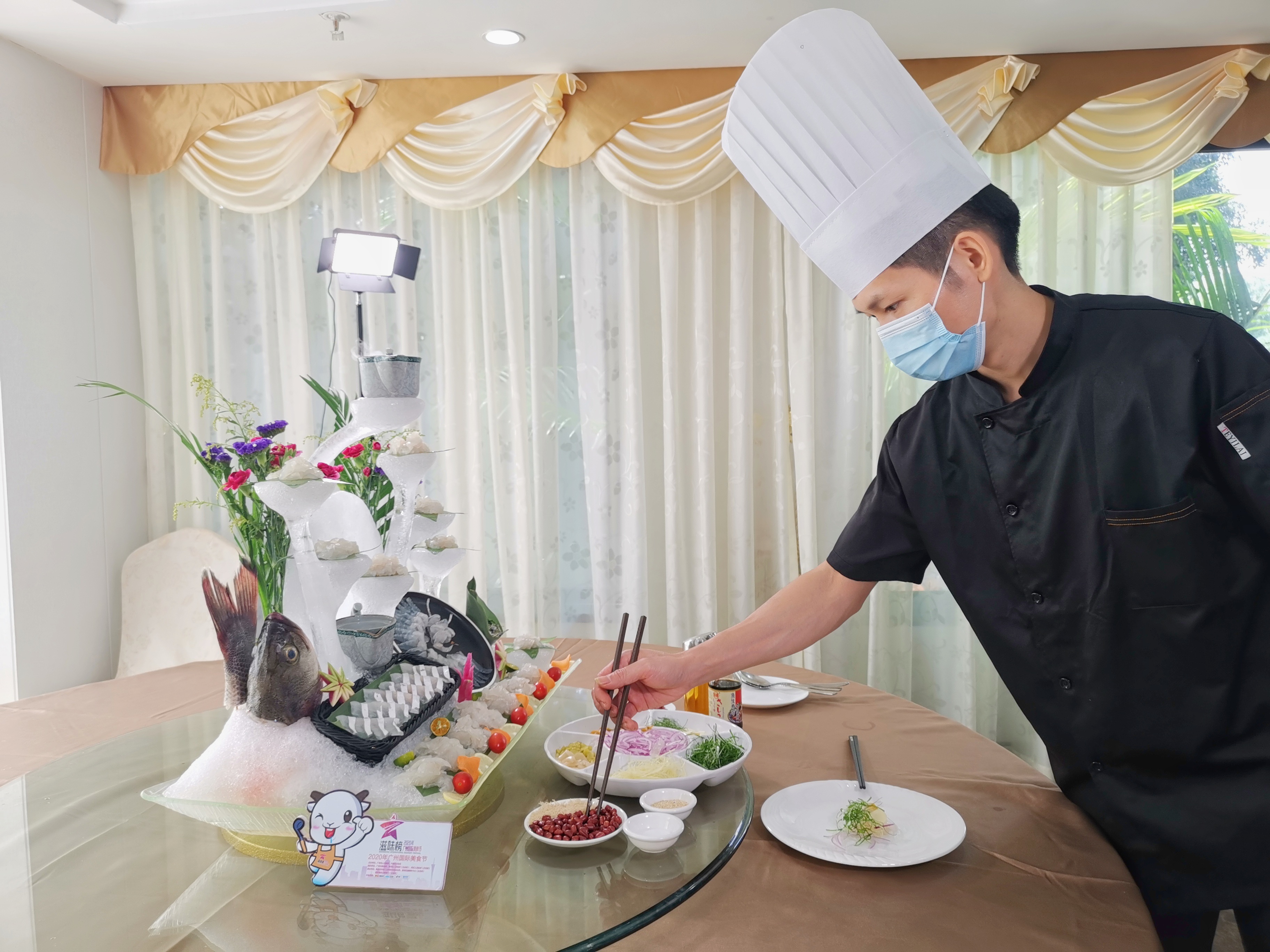 渔旺十八厨师精心制作打榜菜珠江口海鲈刺身