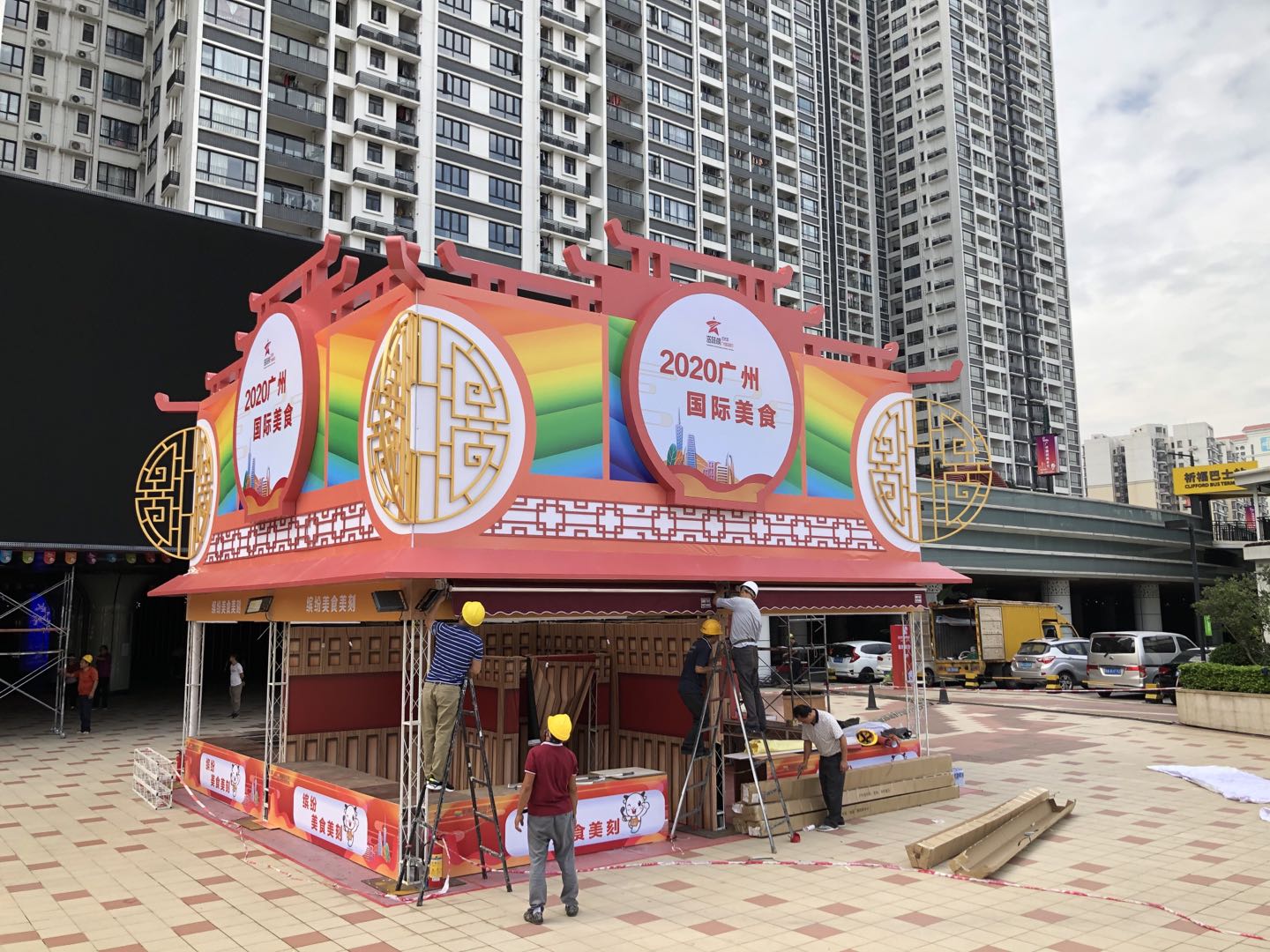广州国际美食节门楼已搭建好!祈福缤纷世界主会场布展工作有序进行