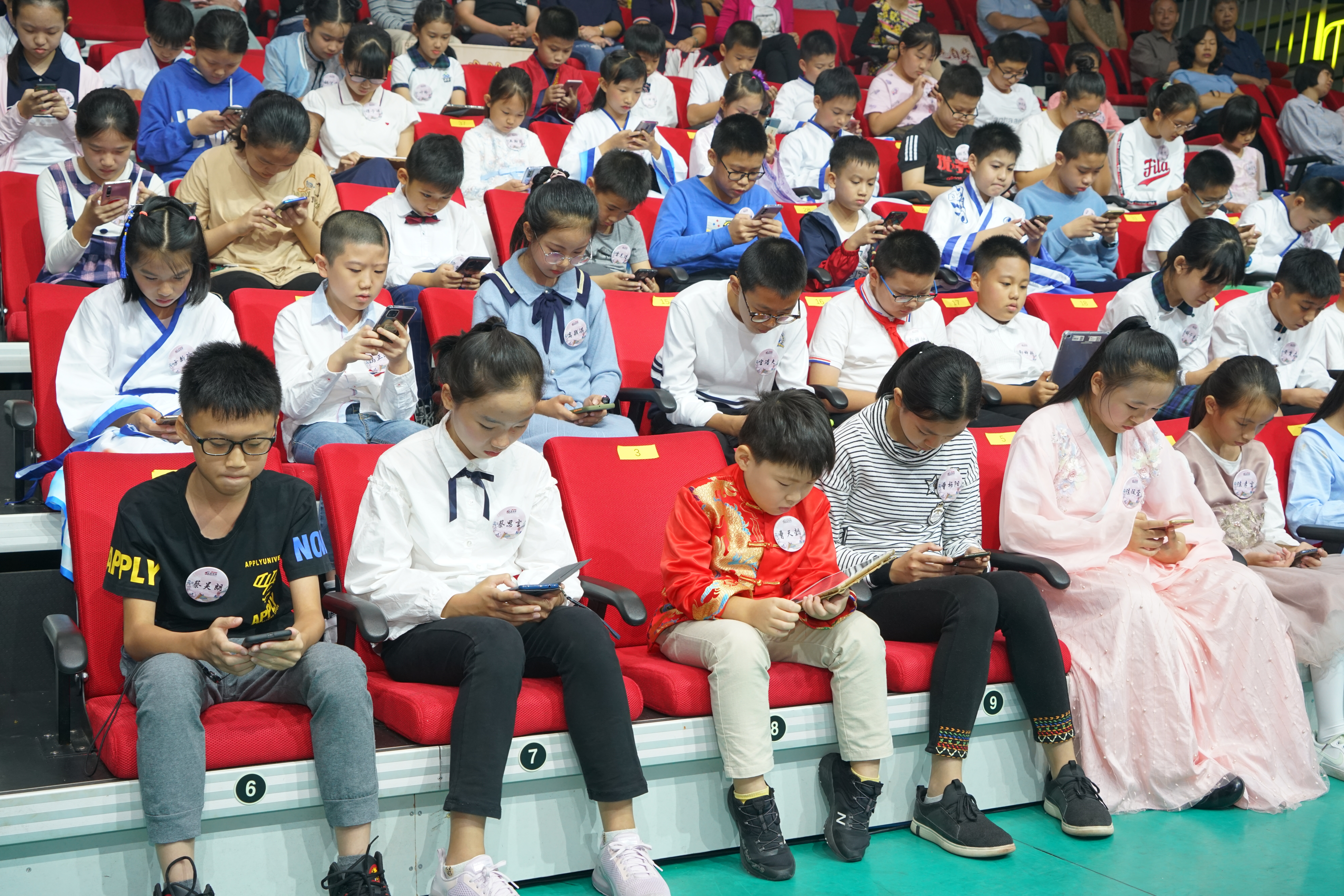 当日上午进行小学组复赛。在海选初赛线上答题系统中获得500分满分的55位选手精神饱满,信心十足。本次比赛分“百舸争流”“赛龙夺锦”两个环节。第一环节是“百舸争流”。所有参赛选手同时用手机答题,共30道题,限时15分钟,答题正确率最高且用时最短的前12位选手进入下一环节。名列第一的冯正瀚仅用2分4秒就答对27道题。