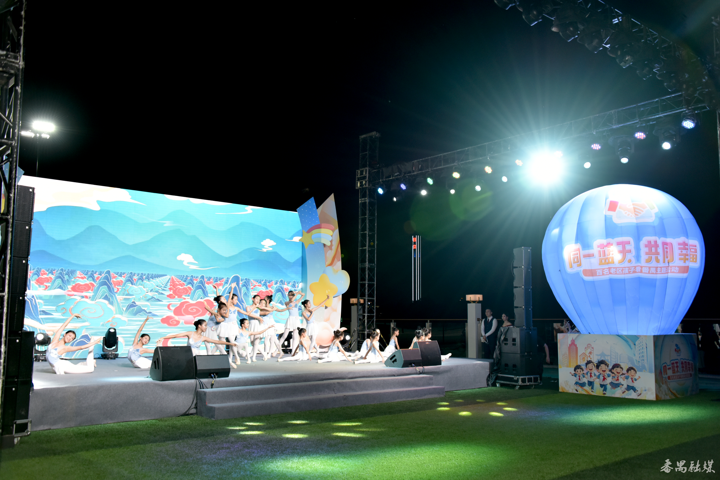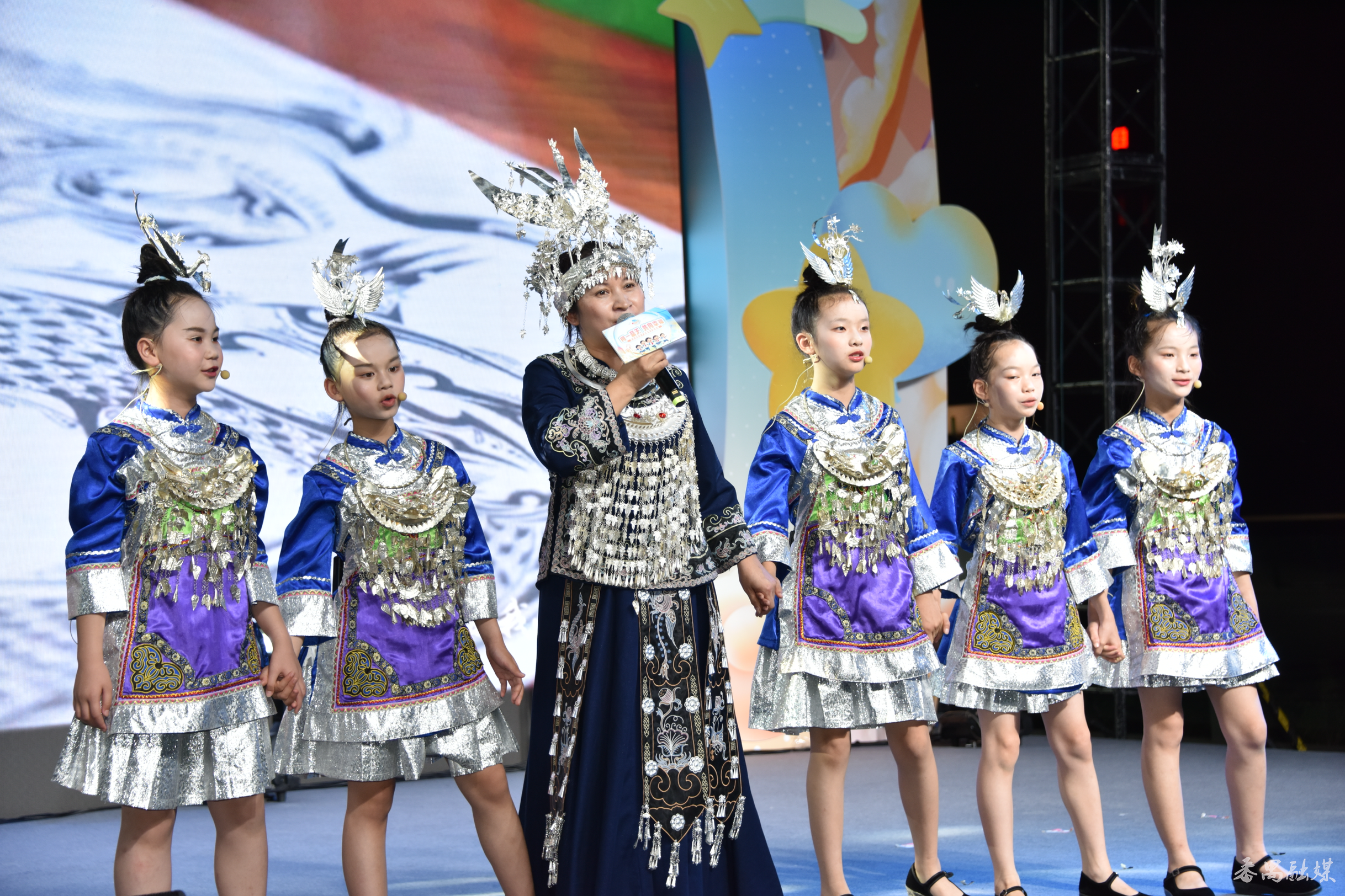 随后,现场上演了精彩的文艺表演。爱国主义题材情景剧《星海耀延安》中,孩子们用稚嫩而坚定的声音唱响民族最强音,向伟大的音乐家冼星海致敬;来自拉萨、波密、喀什、三都、上杭的孩子与番禺学子携手带来舞蹈串烧;三都水族的马尾绣服饰展示与民歌合唱,充分展现了浓郁的民族文化魅力。最后,活动在老区与湾区孩子共同演绎的《感恩的心》歌声中圆满结束。此时,大屏幕同步播放着孩子们研学期间的笑脸集锦,每一张笑脸都定格了他们成长的瞬间,也传递着两地孩子之间深厚的友谊。