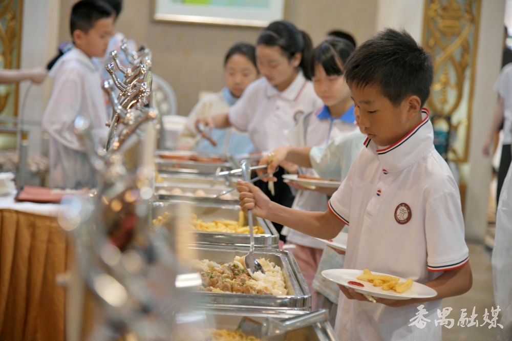 “同一蓝天 共同幸福——百名老区孩子看番禺”活动主办方,番禺大厦负责人等早早来到现场,安排用餐、退房等事宜,给予孩子们无微不至的关怀和照顾。早上8时,孩子们陆陆续续出来用餐,不同地区的孩子们坐在一起。不同于前几天的活泼与开朗,今天的氛围里多了一些安静和不舍,“这趟旅程我交到了新朋友,我们和新疆的同学相处得很愉快,我们永远是‘阿达西’(新疆话中的‘朋友’)。”贵州三都县鹏城希望学校学生石聚夕表示。