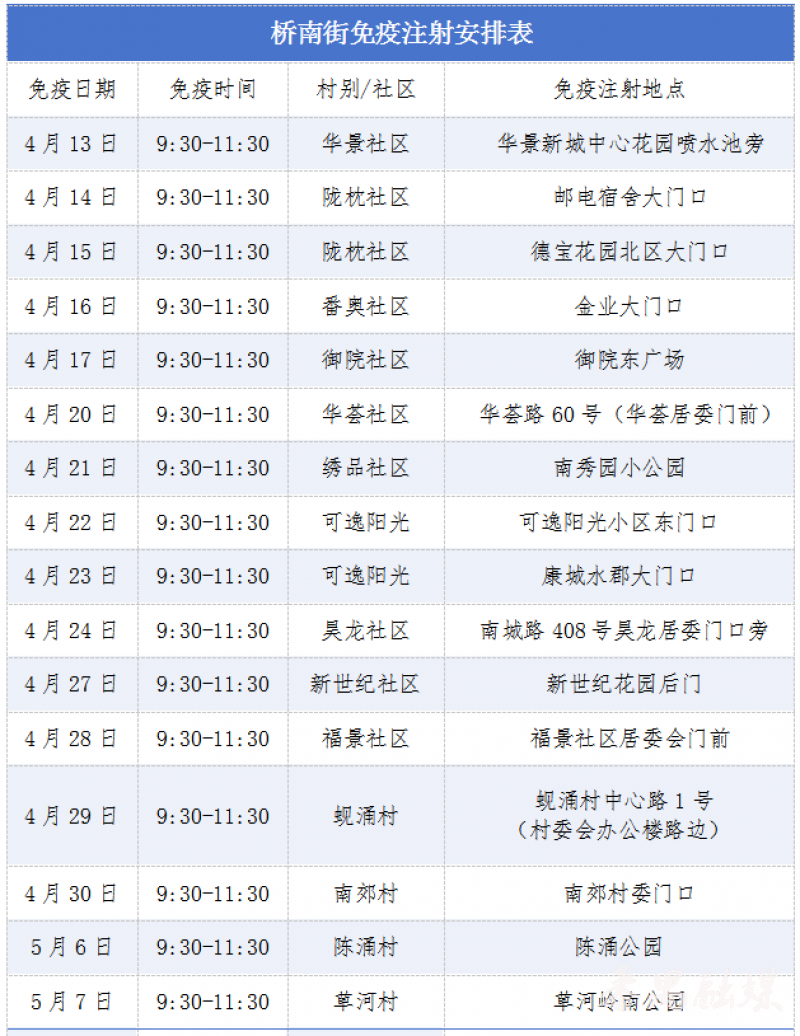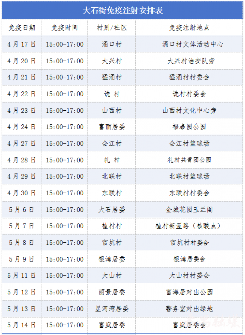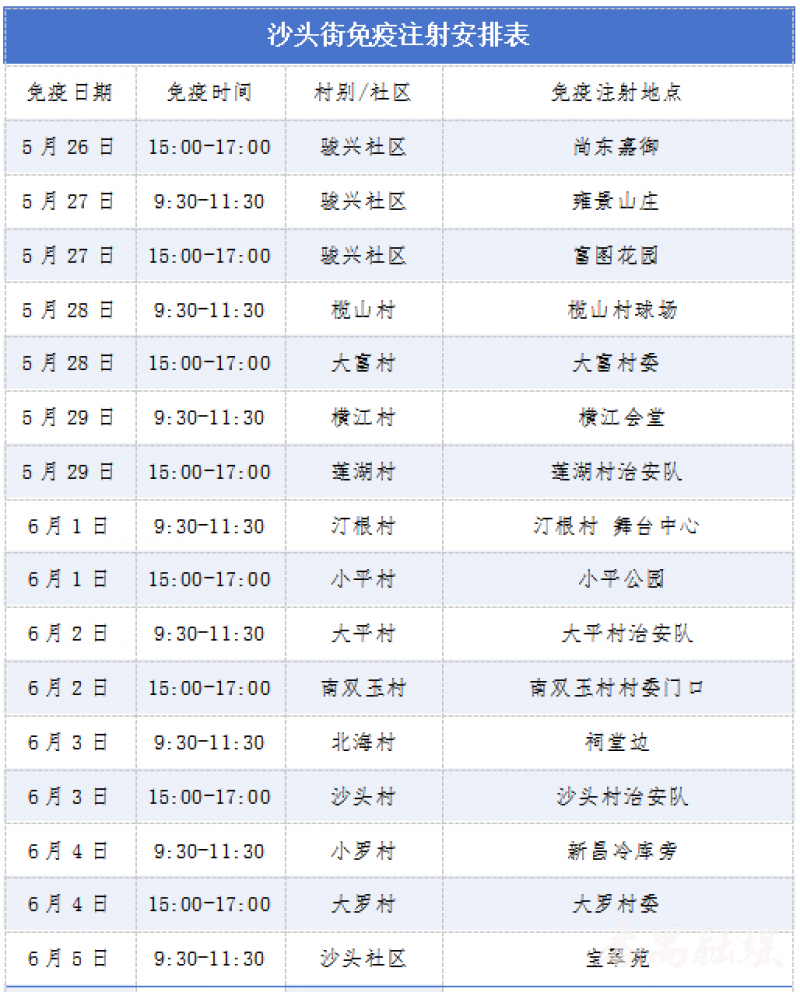 各街道免疫注射安排