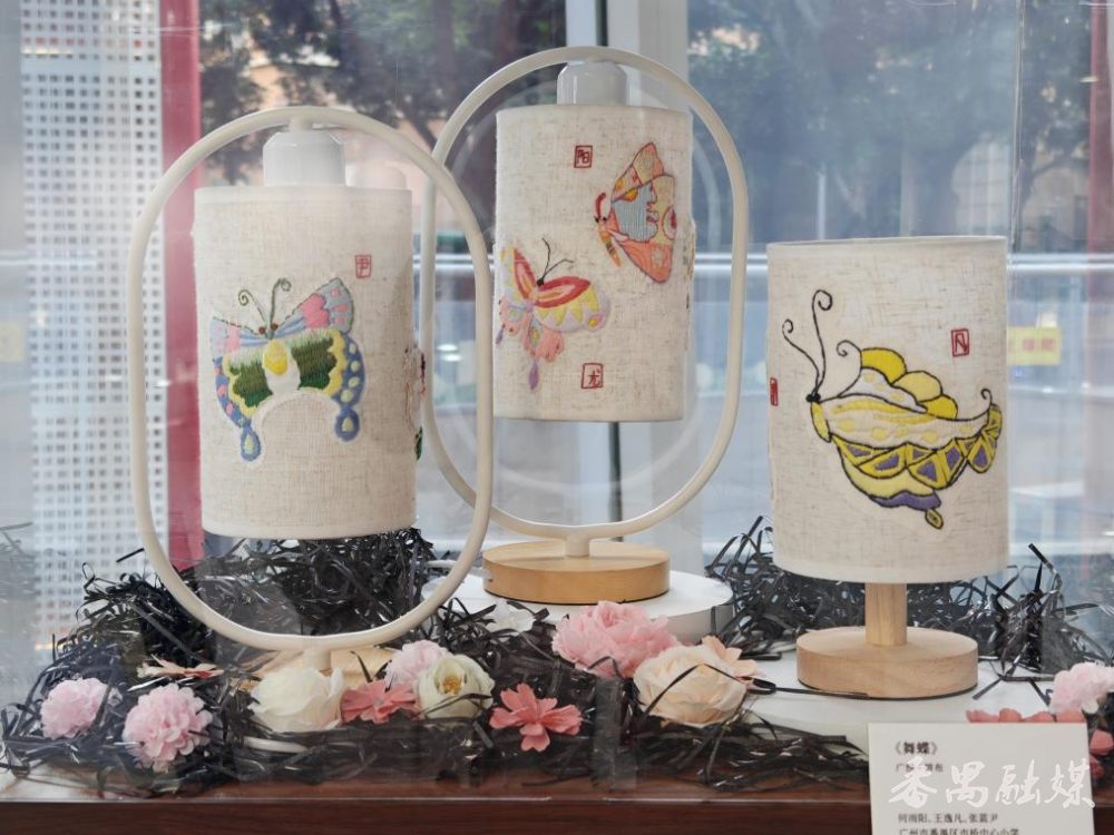 在本次广州市首届校园广府文化艺术展演中,市桥中心小学选送的广绣布艺台灯《舞蝶》,凭借精湛的刺绣技艺、独特的创意设计与深厚的文化底蕴荣获金奖。这件作品打破了广绣传统的平面呈现模式——它不再是仅供观赏的挂画或摆件,而是让灵动的蝶翼从绣布上“翩然飞起”,立体栖息于灯罩之上,让千年针丝在当代生活空间里焕发新生。这种“广绣+家具”的创新设计理念,既是对非遗活化的大胆探索,也让传统广绣完美融入当代家居环境,为传统工艺的传承与发展开辟了全新路径。