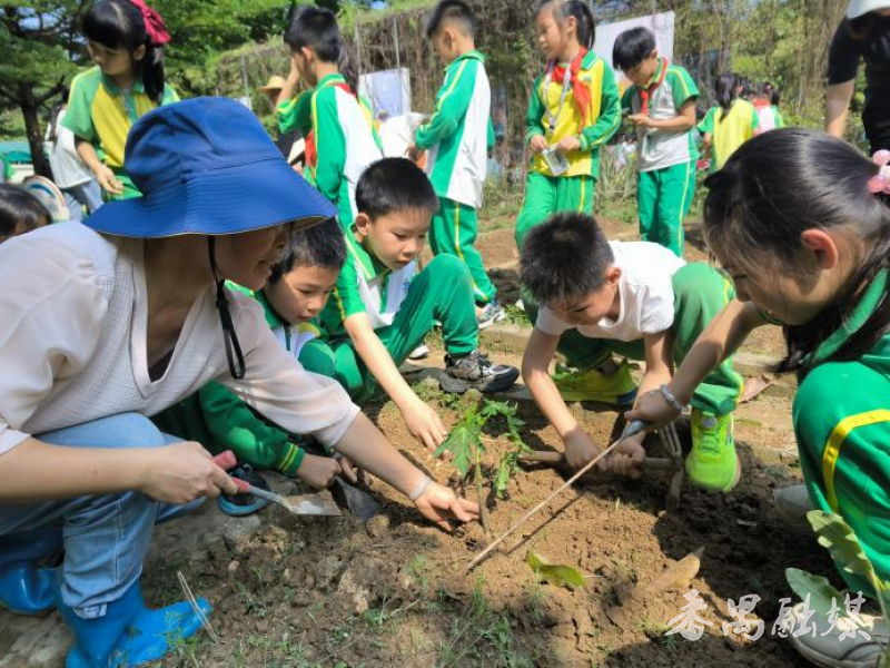 理论学习后,田间实践环节在学校的小农田开展。校长袁伟健在致辞中勉励同学们以勤勉耕耘的态度对待学习与生活,在劳动中锤炼本领、磨砺意志,争做热爱劳动的新时代好少年。在专家示范下,同学们认真学习翻土、扶苗、培土、浇水等种植技巧。在班主任与家长的协助下,大家拿起农具分工协作,小心翼翼地将秧苗栽入田中,亲身完成从知识学习到实践操作的完整劳动过程。