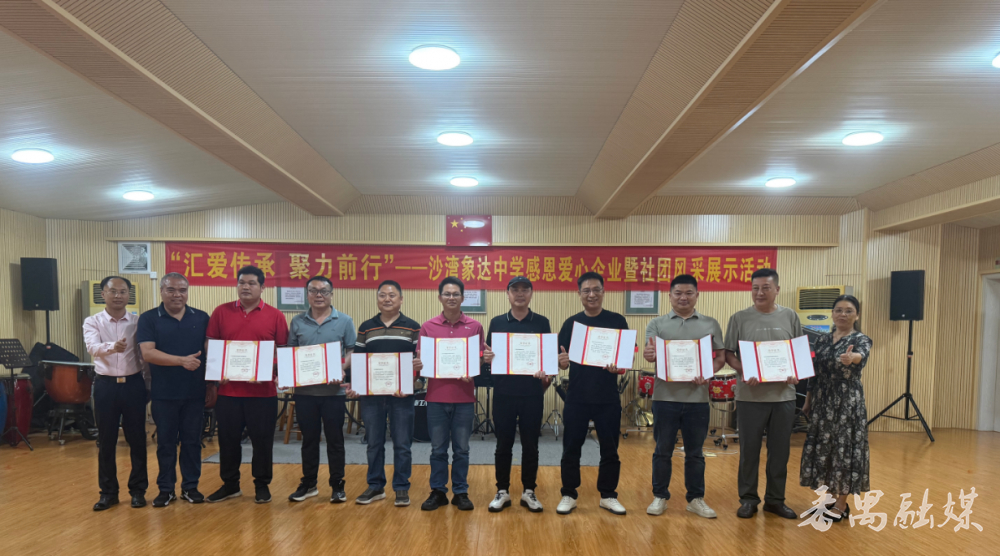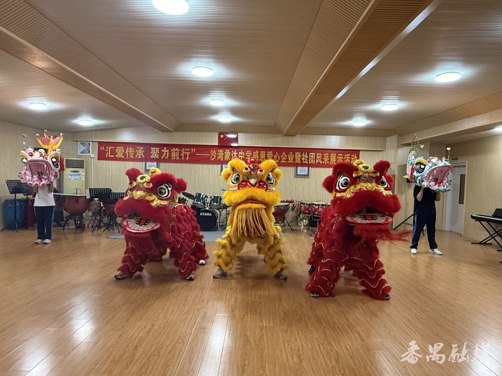3月31日下午,番禺区沙湾象达中学举行“汇爱传承,聚力前行”感恩爱心企业暨社团风采展示会,八家爱心企业捐赠给学校舞狮社团的新器材顺利交接,活动集中展示了学校社团建设成果与家校社协同育人成效。
