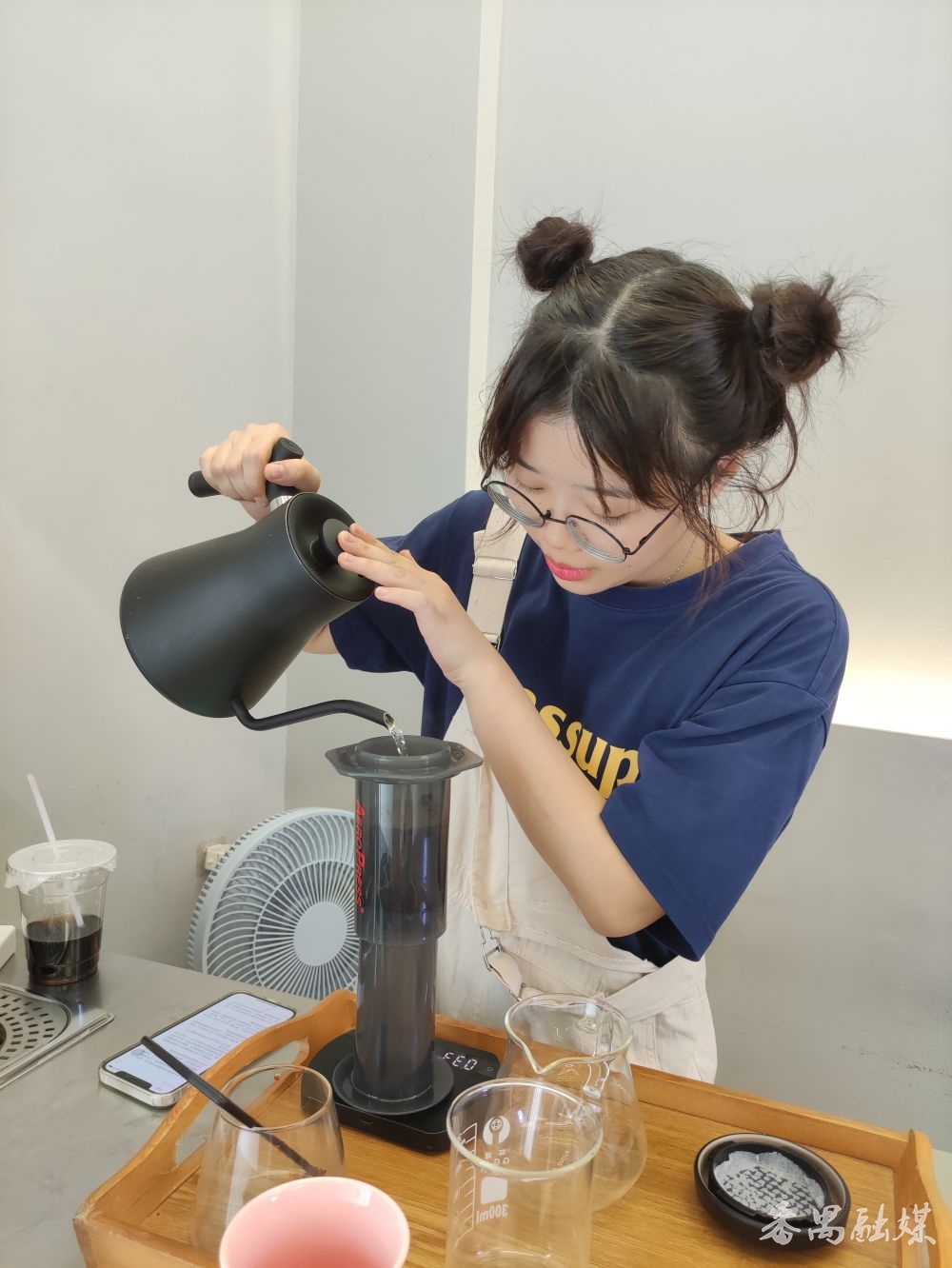 CEC智遇咖啡主理人婷婷在制作咖啡