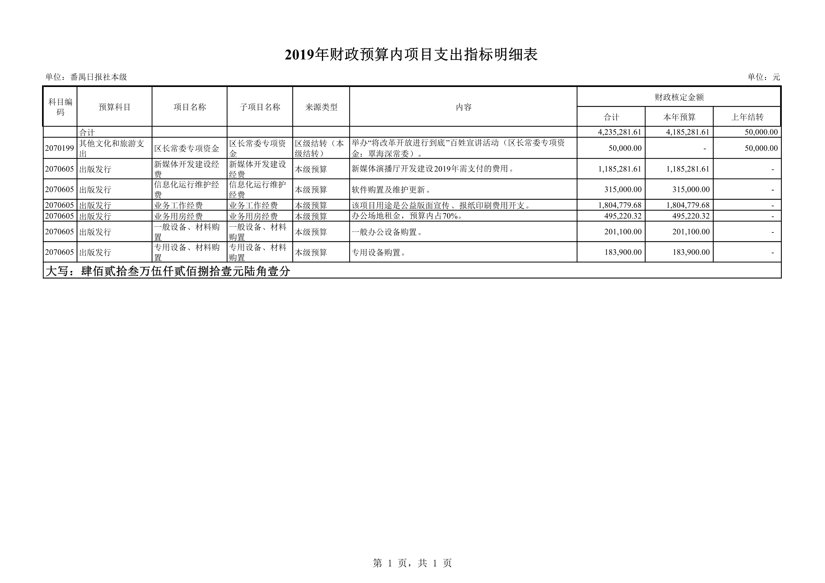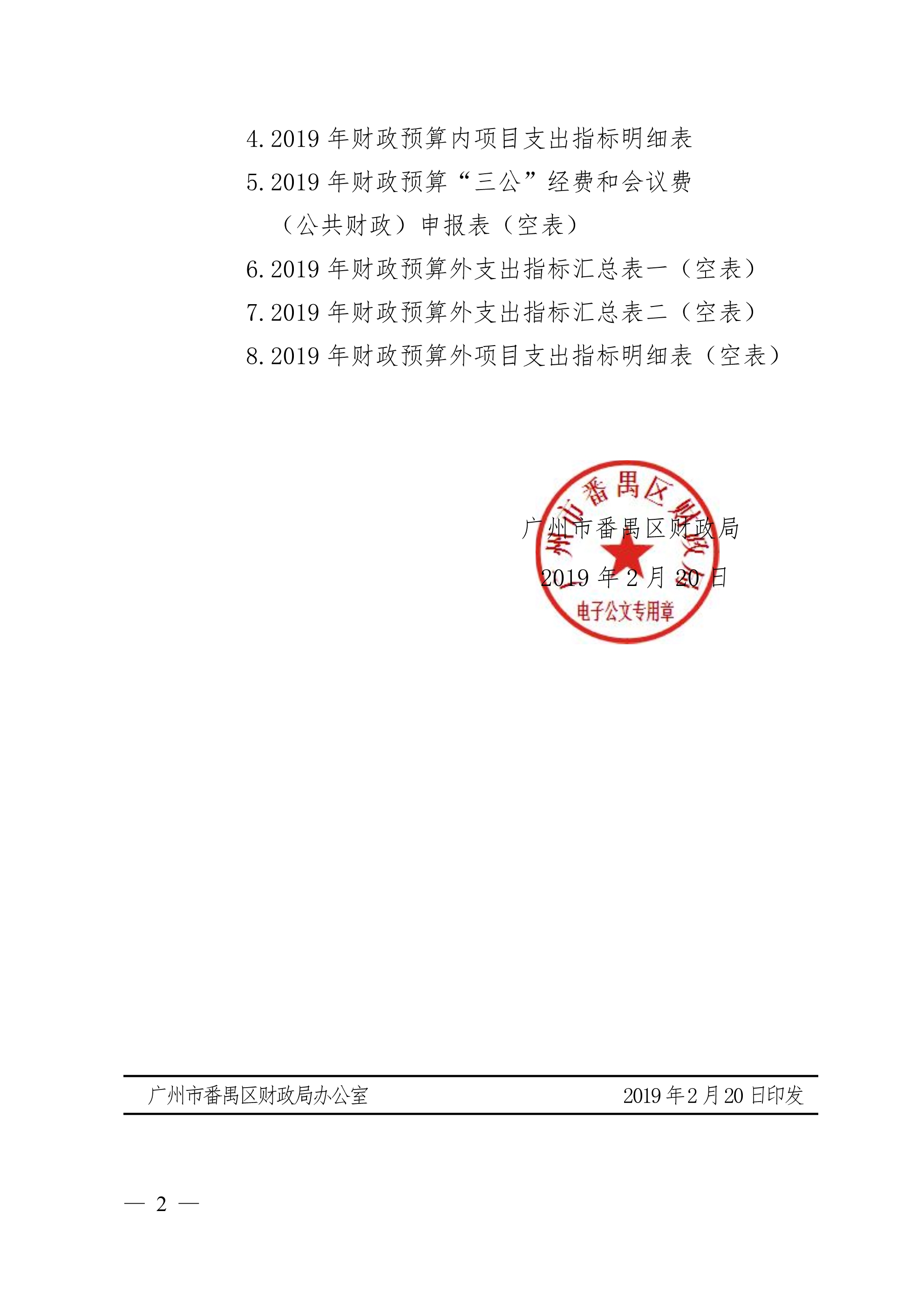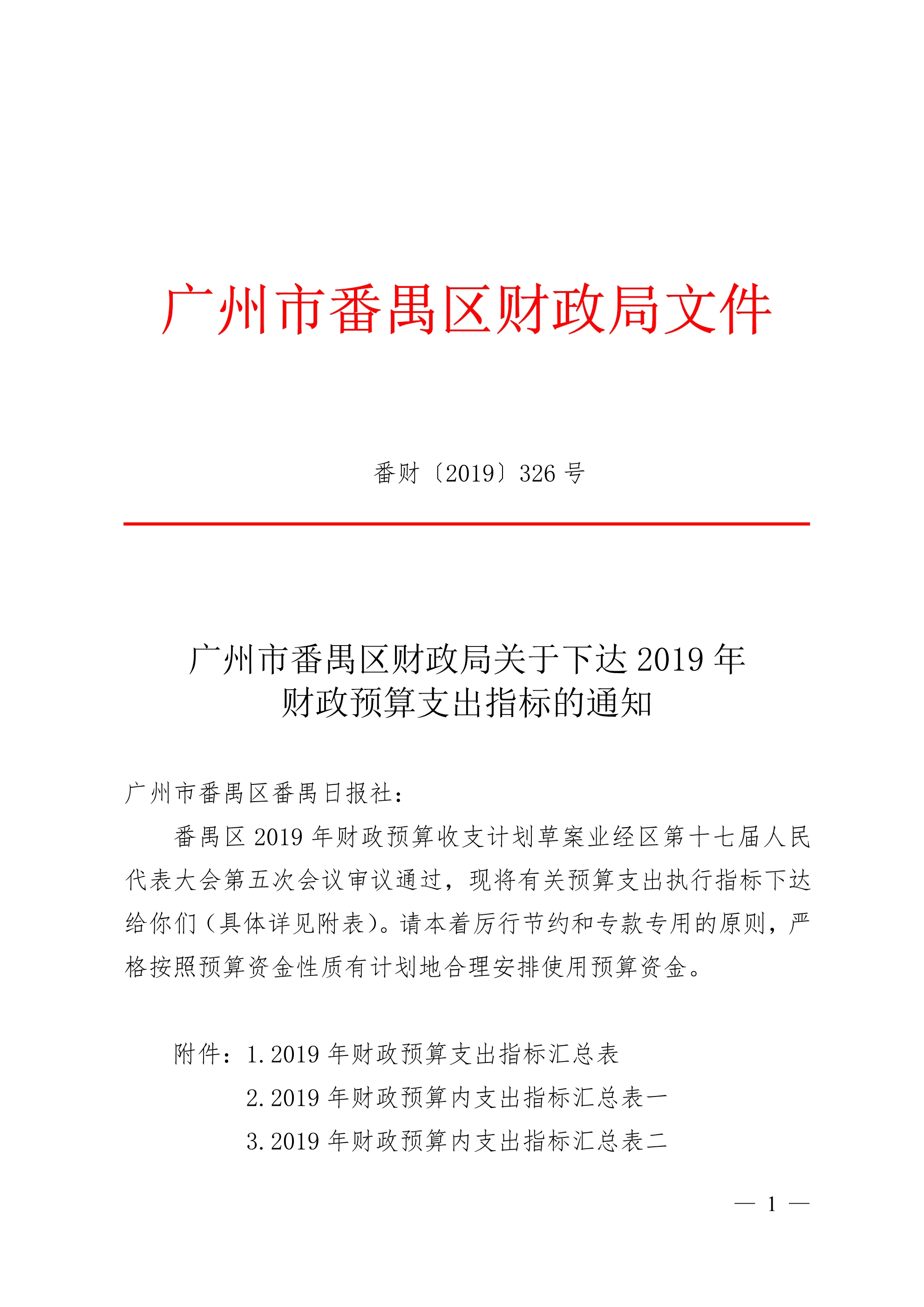 广州市番禺区财政局关于下达2019年财政预算支出指标的通知