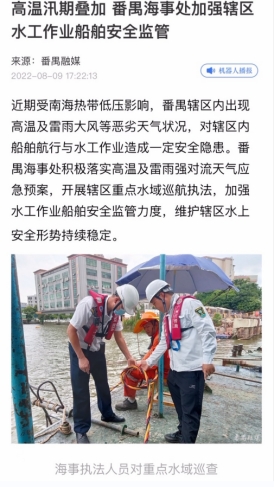 防汛消息相关报道(2022年8月9日掌上番禺客户端)