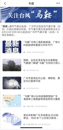 台风“马鞍”专题报道页面(掌上番禺客户端)