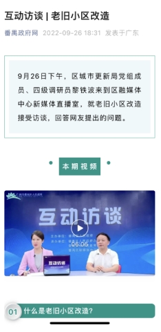 《互动访谈》栏目(2022年番禺区政府门户网站)