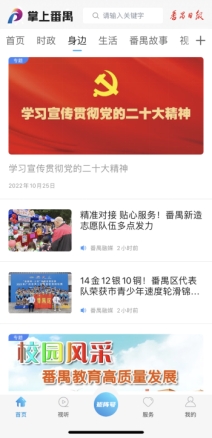 “掌上番禺”客户端开设《二十大时光》专栏(2022年10月17日)