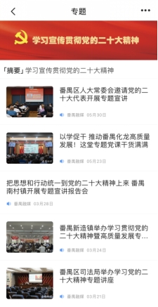 “掌上番禺”客户端开设的“学习宣传贯彻党的二十大精神”专题