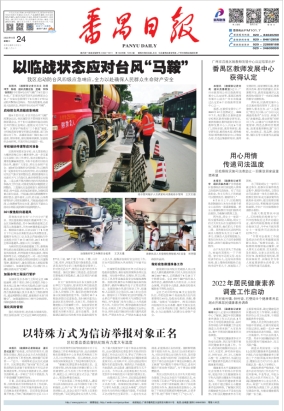台风“马鞍”相关新闻报道(2022年8月24日番禺日报头版)