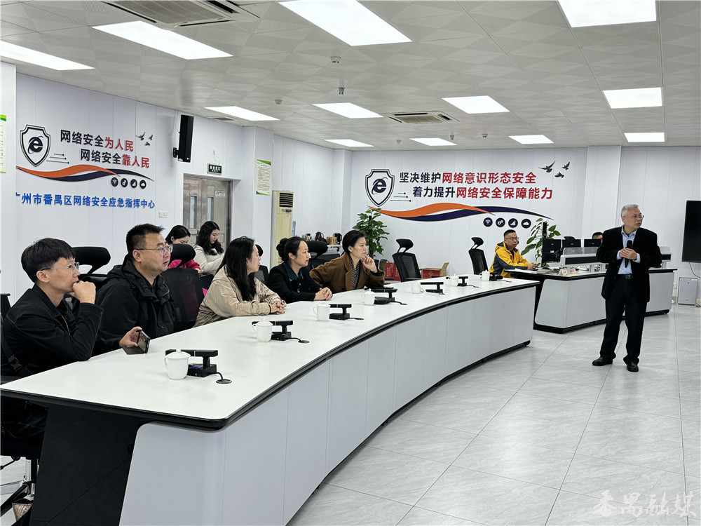 在应急广播系统指挥中心,参观组重点关注番禺融媒在公共服务领域的实践。目前,全区177个行政村已实现应急广播全覆盖,日常时段轮播政策与公益内容,打通了基层宣传“最后一公里”;紧急情况下可快速启动信息播报,为民众提供及时指导。此外,中心布局的18个无人机工作基站,通过定期航拍为全区各部门提供免费图像与数据支持。这一“空中视角 + 地面联动”的服务模式,让参观组对融媒技术的应用广度有了更深刻的认识。
