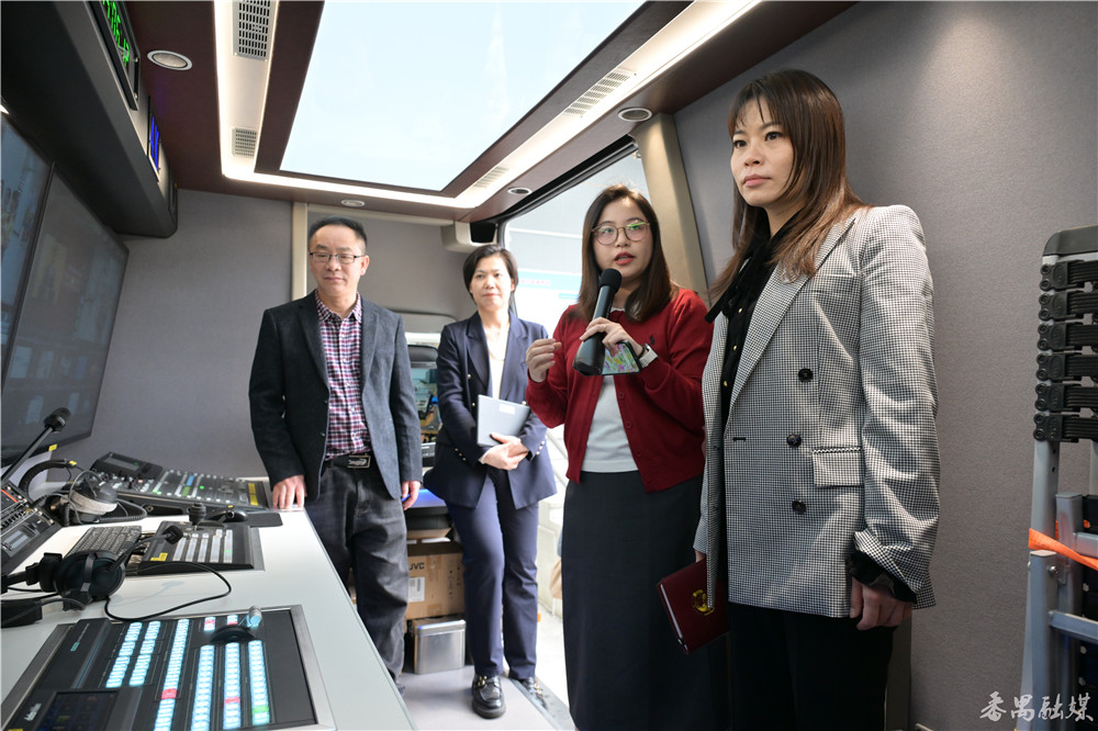 在番禺区融媒体中心领导陪同下,参观组首先来到“4K + 5G”AI新媒体直播车,了解该车的技术设备、应用场景,及在报道重大事件、追踪民生热点等方面所发挥的重要作用。